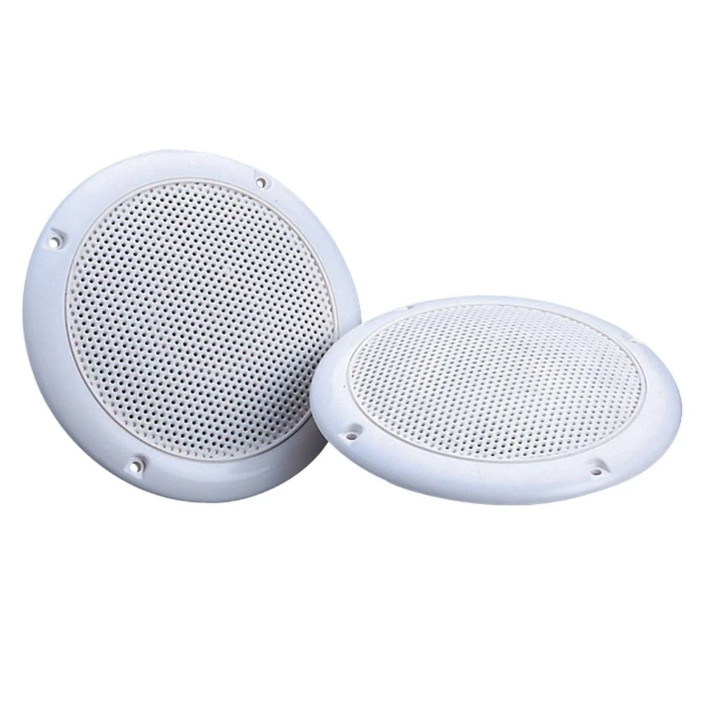 Destinés à un usage en milieu humide (bateau, véranda, piscine, salle de bain, etc.) ces haut-parleurs sont réalisés avec le plus grand soin. Leur système 2 voies assure une excellente reproduction sonore. Réalisés en ABS thermo moulé, ils sont résistants aux projections d’eau. Caractéristiques techniques :- En plastique ABS moulé- Aimant 6.4 oz- Profondeur (mm) : 130- Hauteur (mm) : 55- Largeur (mm) : 130- Poids : 1 Kg- Couleur : Blanche- Diamètre (mm) : 127- Fréquence réponse (Hz) : 80-18000- Impédance : 8 Ohms- Puissance : 40W RMS/ 80W- Sensibilité : 90 dBV/Pa- 2 Voies- Profondeur de montage : 6,5cm