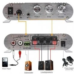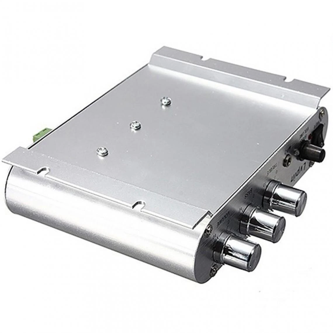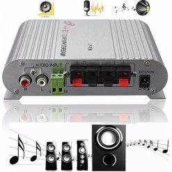 Faible distorsion et opération facile, agréable à utiliser sur votre véhicule ou votre maison. Boîtier léger en aluminium argenté mat et permet un contrôle total de votre volume, aigus et graves. Il dispose également d’une prise jack pour brancher votre MP3, MP4.