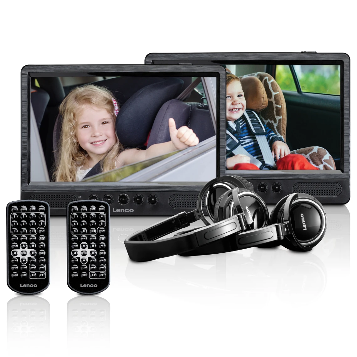 Le lecteur Lenco DVP-1045 est un ensemble de deux lecteurs DVD compacts équipés chacun d’un écran de 10 pouces.