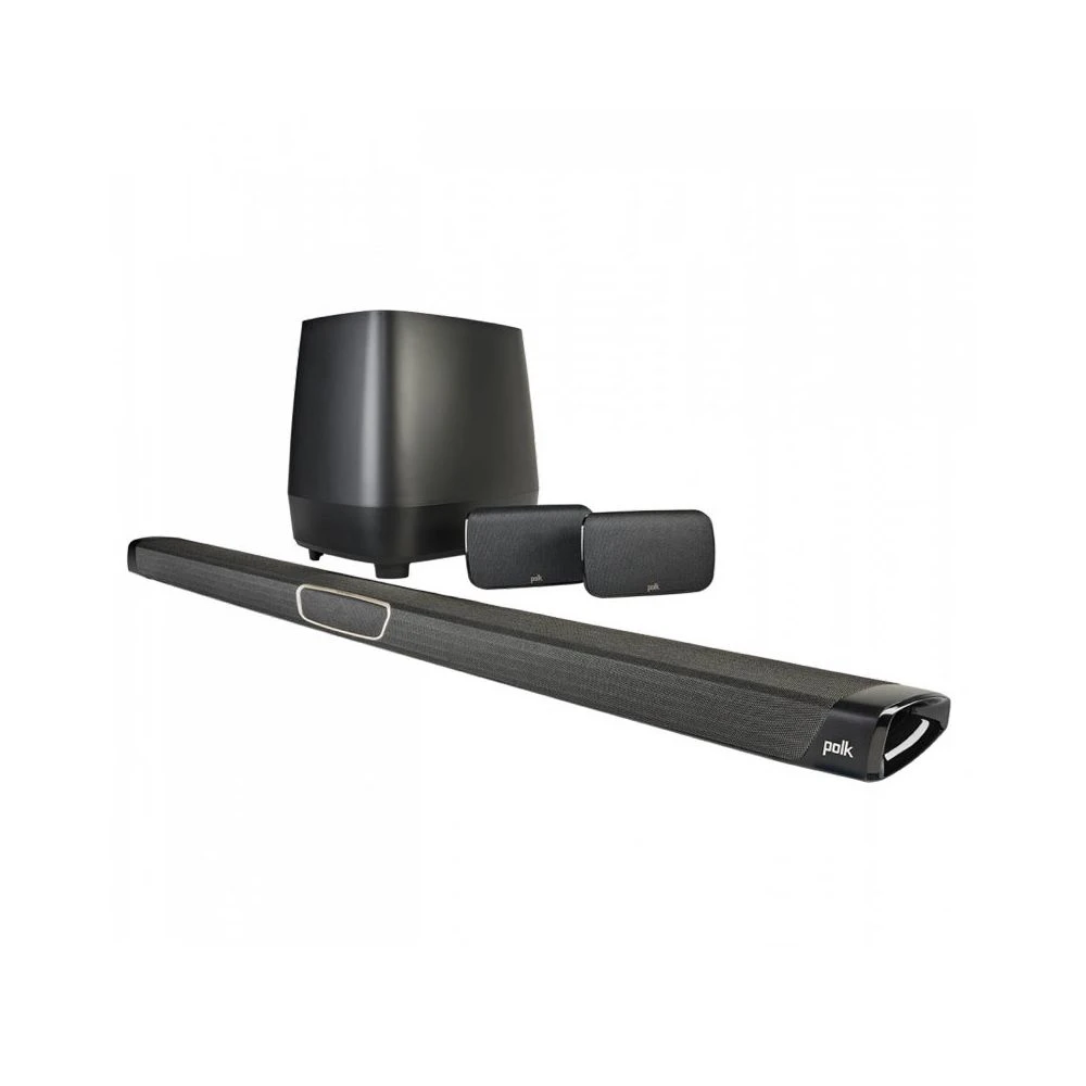 Polk MagniFi MAX SR – Barre de son 5.1 – 4K HDR – 400 Watts – Dolby Digital 5.1/DTS Digital Surround – Bluetooth/Wi-Fi – Google ChromeCast – Caisson de basses sans fil et enceintes surround