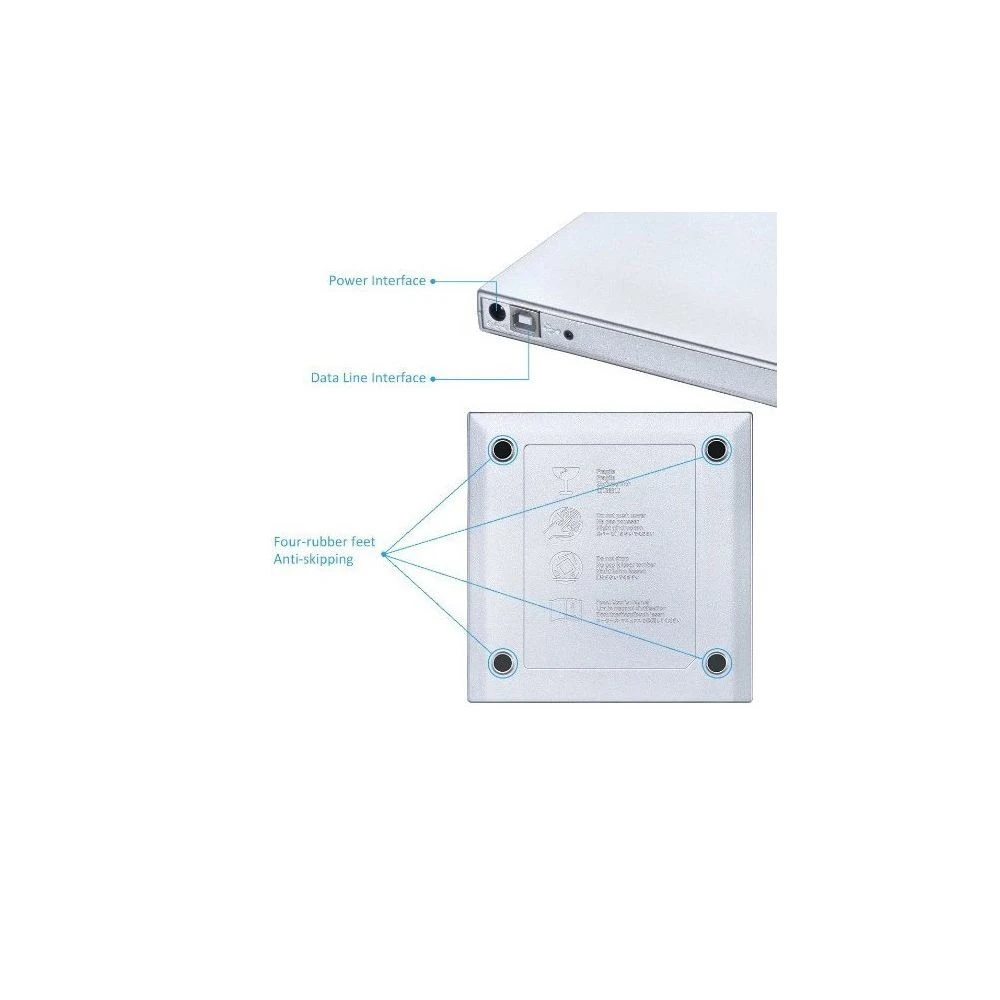 Lecteur/Graveur CD-DVD-RW USB pour PC Branchement Portable Externe (ARGENT)
