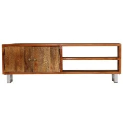 Ce meuble TV en bois dĂ©gage un charme rustique et sera un excellent supplĂ©ment Ă votre intĂ©rieur. Le meuble HiFi est fabriquĂ© en bois massif qui a reçu une belle finition par polissage, peinture et laquage, afin de lui donner un aspect raffinĂ©. Cette armoire est entiĂšrement faite Ă la main et les magnifiques grains de bois font de chaque meuble un objet unique et lĂ©gĂšrement diffĂ©rent l’un de l’autre. Ce meuble TV a une surface solide et stable sur laquelle vous pouvez placer votre tĂ©lĂ©viseur, une corbeille de fruits, un vase ou dâautres objets de dĂ©coration. Ce buffet comprend deux Ă©tagĂšres et une armoire Ă 2 portes sculptĂ©es, offrant un grand espace pour ranger vos appareils multimĂ©dia, livres et divers autres objets. L’assemblage est facile. Remarque importante : Les couleurs varient d’une piĂšce Ă une autre, rendant chacune d’elle unique ; la livraison est alĂ©atoire.
