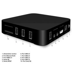 Cette tv box est prĂ©vue pour ĂȘtre branchĂ©e Ă votre Ă©cran par HDMI (cĂąble fourni), et une fois que votre box et que votre Ă©cran sont allumĂ©s vous pourrez vous connecter Ă internet par WiFi ou par Ethernet (prise RJ45, cĂąble non fourni). Il vous sera alors possible, entre autres, de tĂ©lĂ©charger des applications, d’utiliser Facebook, Twitter, de lire vos mails, etc…